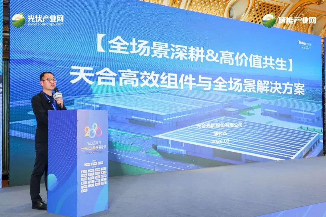 此次亮相2026第四届重庆分布式光储发展论坛,是天合光能深耕西南分布式光储市场的重要举措。未来,天合光能将持续以技术创新为核心,以场景化解决方案为抓手,携手重庆科凡特新能源有限公司等合作伙伴,充分发挥产业链协同优势,将更高效、更适配、更具价值的光储产品与解决方案带到西南各地,助力区域实现“双碳”目标,推动绿色能源产业高质量发展。