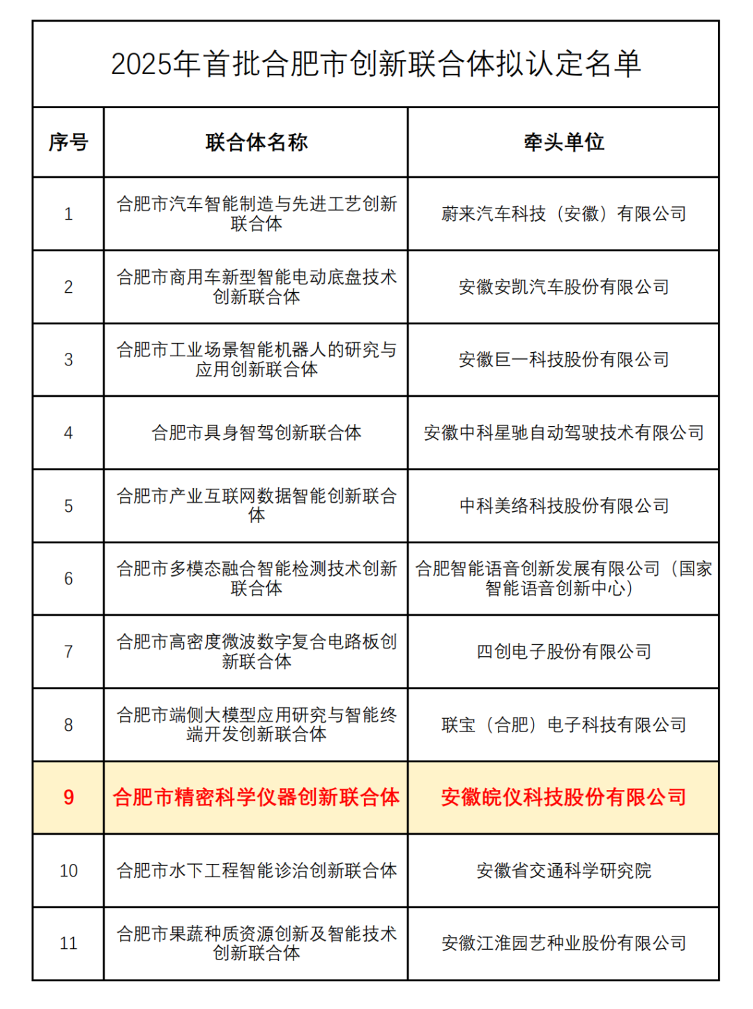 2025首批合肥市创新联合体拟认定名单如下: