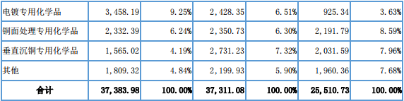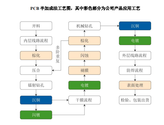 公司主要从事 PCB 所需要的专用电子化学品的研发、生产和销售。PCB 作为组装电子元器件和芯片封装用的基板,是电子产品的关键电子互连件,随着应用领域需求扩大和制造技术进步,PCB 产品类型由普通的单双面板和多层板发展出高频高速板、HDI、软硬结合板、类载板、半导体测试板、载板等高端产品。报告期内,公司产品主要应用于上述高端 PCB 的生产