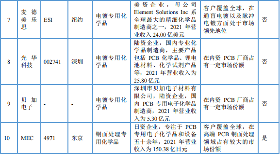 (1) PCB 专用电子化学品