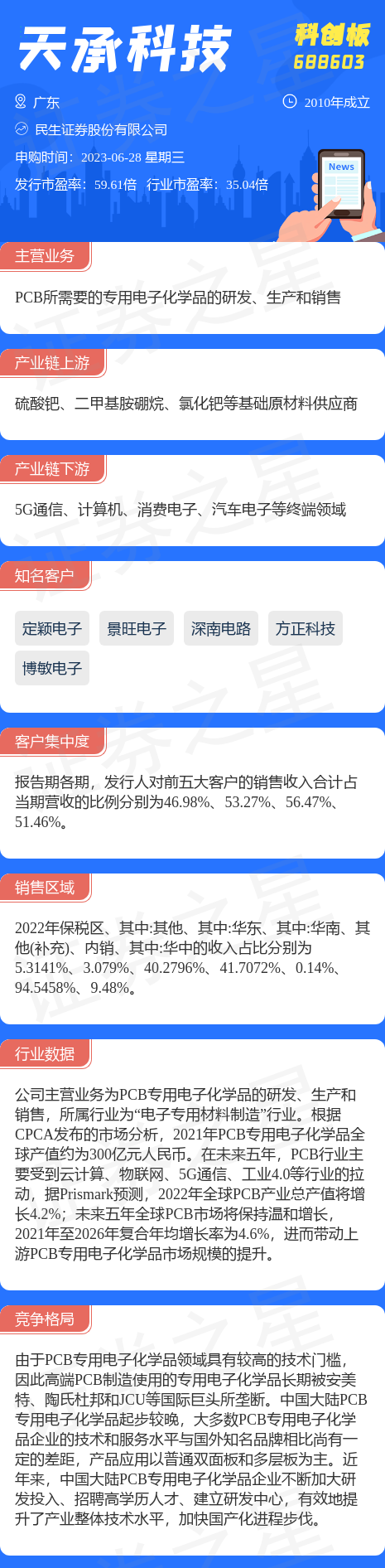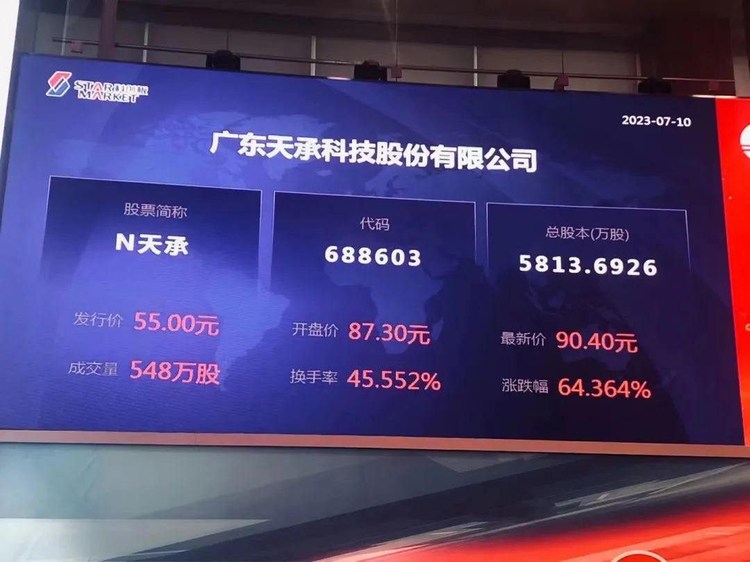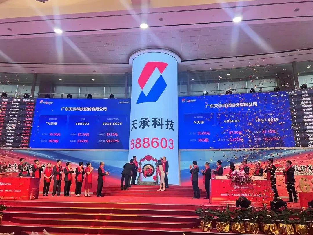 7月10日,天承科技在上海证券交易所科创板上市,公司证券代码为688603,发行价格55元/股,发行市盈率为59.61倍。