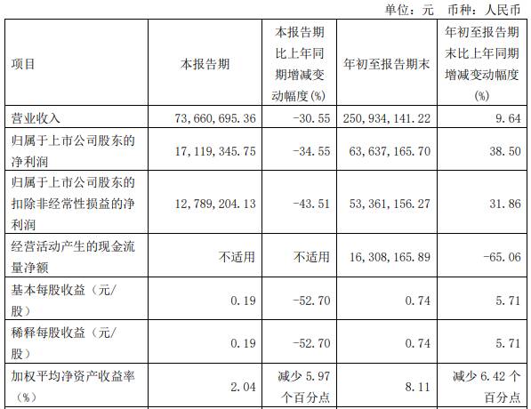 今年前三季度来看,康众医疗营收净利仍增长,但经营净现金流大降,ROE也下滑。1-9月,公司营业收入为2.51亿元,同比增长9.64%;归属于上市公司股东的净利润为6363.72万元,同比增长38.50%;归属于上市公司股东的扣除非经常性损益的净利润为5336.12万元,同比增长31.86%;经营活动产生的现金流量净额为1630.82万元,同比下降65.06%;加权平均净资产收益率8.11%,同比减少6.42个百分点。