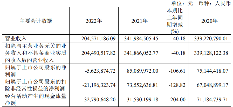 2022年,康众医疗实现营业收入2.05亿元,同比下降40.18%;归属于上市公司股东的净利润-562.39万元,同比下降106.61%;归属于上市公司股东的扣非净利润-2119.63万元,同比下降128.82%;经营活动产生的现金流量净额-3279.06万元,同比下降204.00%。