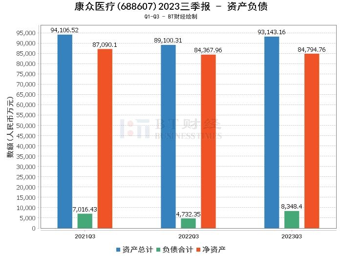 从资产负债方面来看,2023年三季度末,康众医疗的总资产为9.31亿元,相比上年度末的9.03亿元有所增长。负债合计为8348.4万元,相比上年度末的5852.65万元有所增加。净资产为8.48亿元,相比上年度末的8.44亿元略有增加。资产负债率为8.96%,相比上年度末的6.48%有所上升。