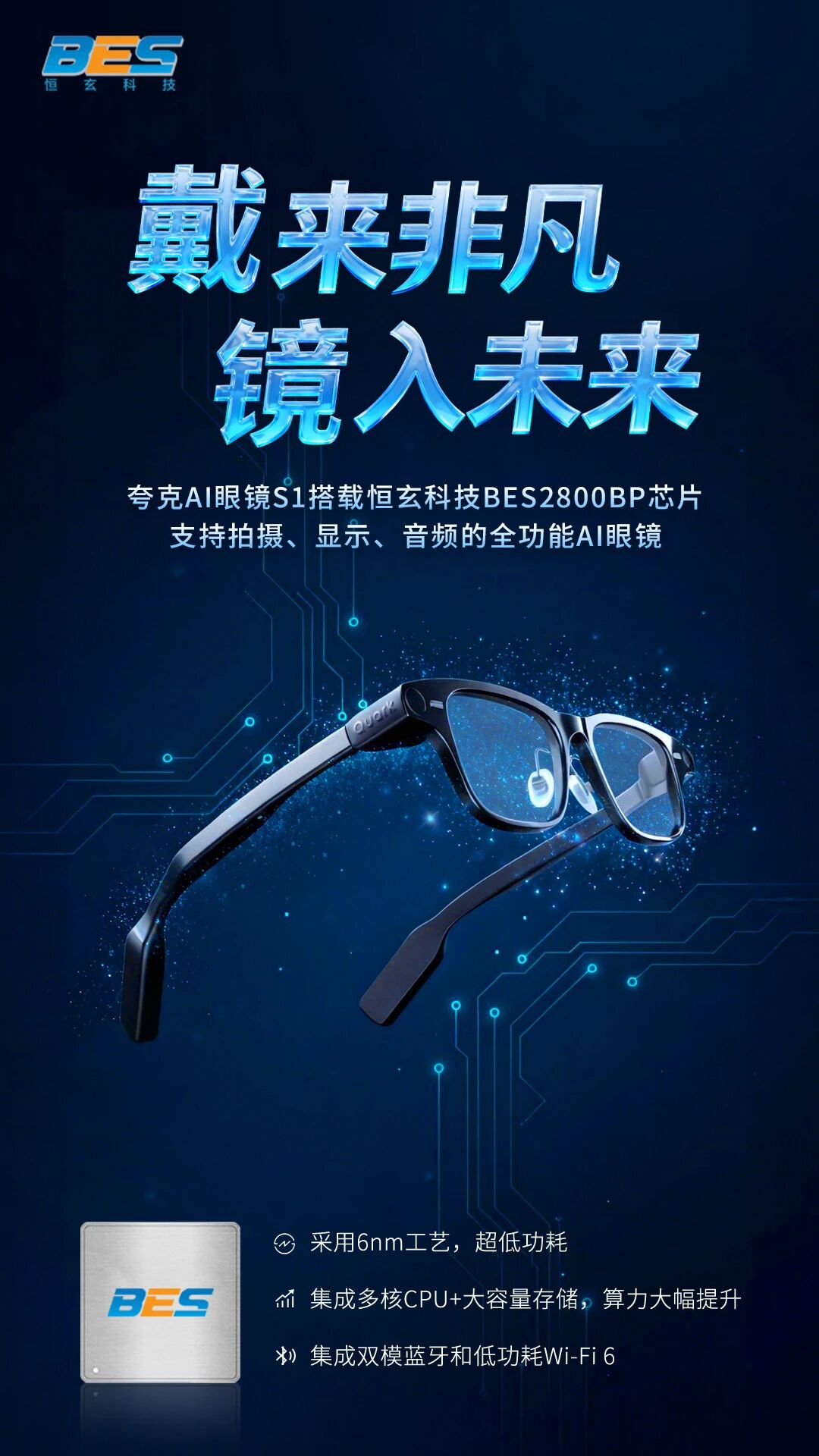 “戴”来非凡,“镜”入未来 | 夸克AI眼镜S1搭载恒玄科技BES2800BP芯片