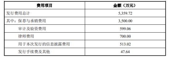 九联科技发行新股的发行费用总额为5,359.72万元(相关费用均为不含税金额),其中,保荐与承销费用为3,500.00万元。