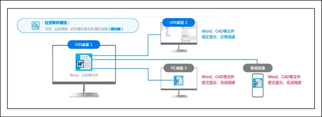 方案采用“数据不落地”核心架构,所有工作数据集中加密存储于企业数据中心,终端仅作为“显示窗口”,从根源上杜绝数据本地拷贝泄露风险。