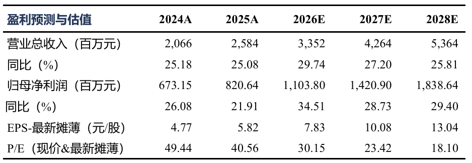 事件:2025年,公司实现营业收入25.84亿元(+25.08%,同比,下同),归母净利润8.21亿元(+21.91%),扣非归母净利润7.91亿元(+23.00%);单Q4季度,公司实现营收7.16亿元(+32.44%),归母净利润1.97亿元(+36.09%),扣非归母净利润1.89亿元(+39.93%),四季度增速亮眼,业绩符合我们预期。