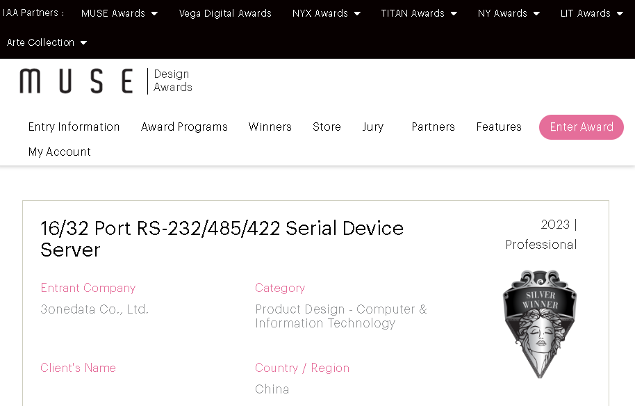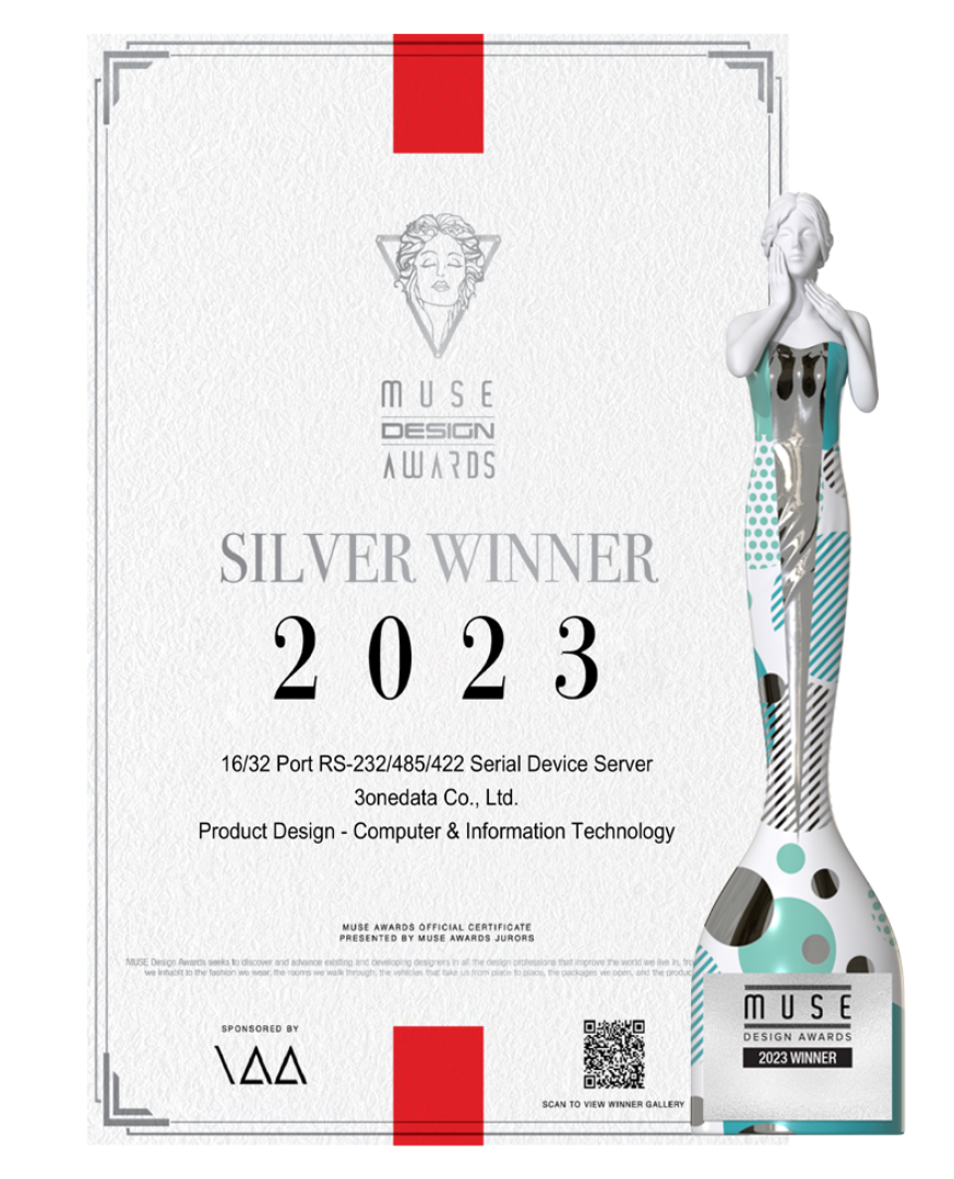 近日,2023年度美国缪斯设计奖(Muse Design Award)获奖名单正式揭晓。三旺通信NP5100安全串行设备服务器荣获产品设计类银奖。
