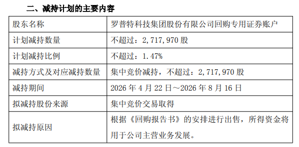 经公司第三届董事会第十四次会议审议通过,公司计划自公告披露之日起15个交易日后至2026年8月16日内,通过集中竞价交易方式出售不超过2,717,970股回购股份(占公司最新总股本的1.47%),所得资金用于公司主营业务发展。