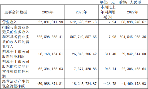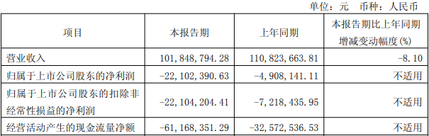 2025年第一季度报告显示,今年第一季度,公司实现营业收入1.02亿元,同比减少8.10%;归属于上市公司股东的净利润-2210.24万元,上年同期为-490.81万元;归属于上市公司股东的扣除非经常性损益的净利润-2210.42万元,上年同期为-721.84万元;经营活动产生的现金流量净额-6116.84万元,上年同期为-3257.25万元。