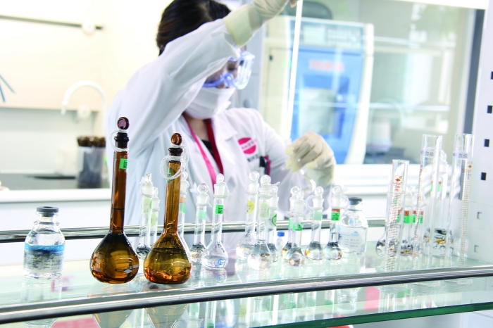 | 实验人员在进行“定量分析”样品配置 | |