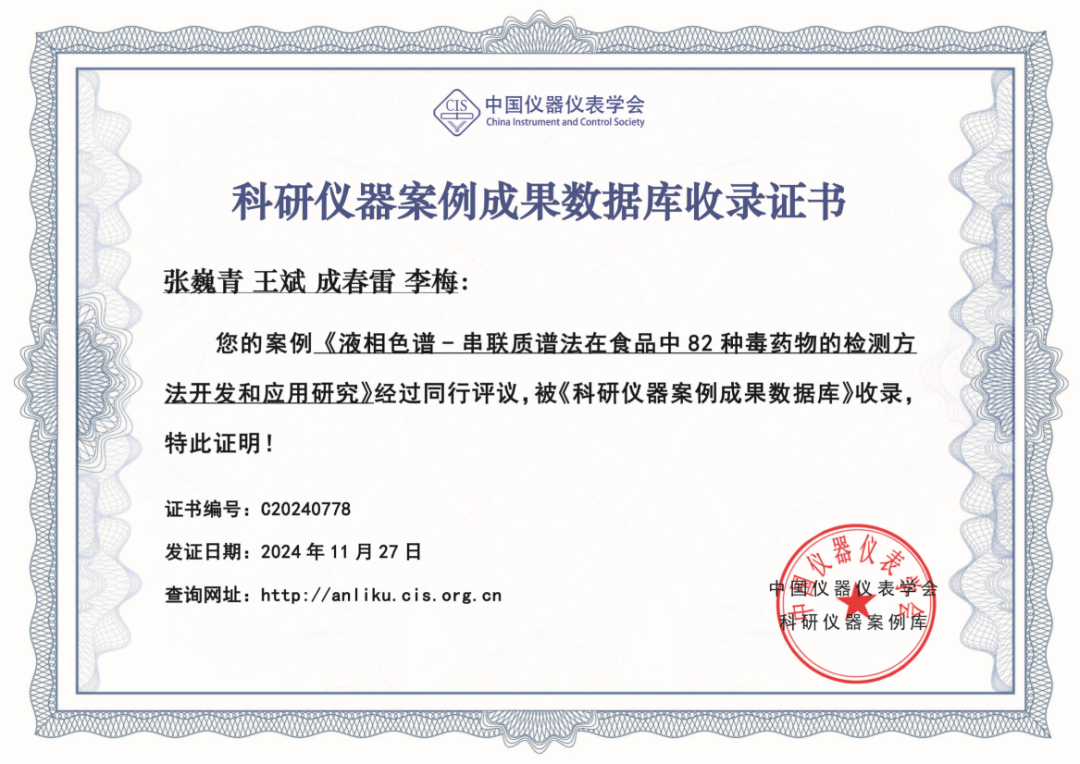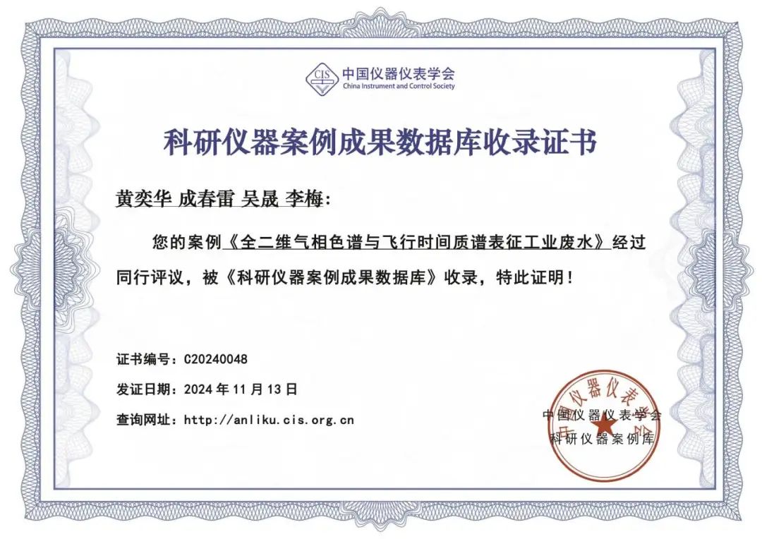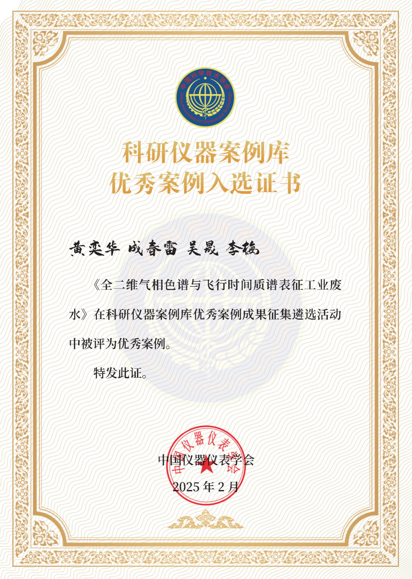 在中国仪器仪表学会举办的“2024年度科研仪器案例征集”活动中,禾信仪器凭借其三款明星产品——LC-TQ 5200三重四极杆液质联用仪、GGT 0620全二维气相色谱-飞行时间质谱联用仪、SPAMS 0525 PM2.5在线源解析质谱监测系统,成功入选。这些案例分别为:《液相色谱-串联质谱法在食品中82种毒药物的检测方法开发和应用研究》《基于在线单颗粒气溶胶质谱技术的移动源精细化源解析技术研究与应用》以及《全二维气相色谱-飞行时间质谱联用仪表征工业废水》。其中,《全二维气相色谱-飞行时间质谱联用仪表征工业废水》凭借卓越的技术表现和广泛的应用价值,进一步入选“优秀百篇案例”。此次入选充分展现了禾信仪器产品的卓越性能和创新应用。