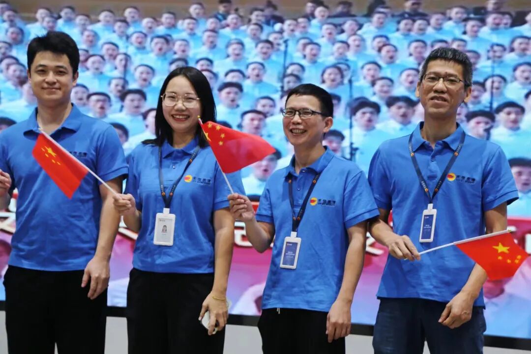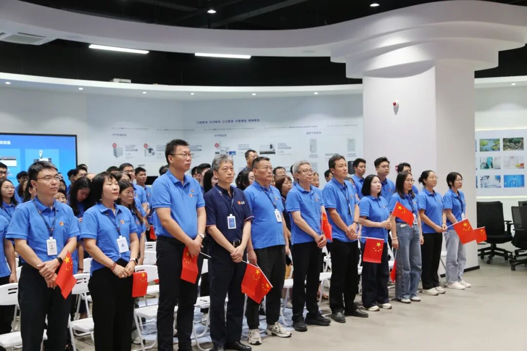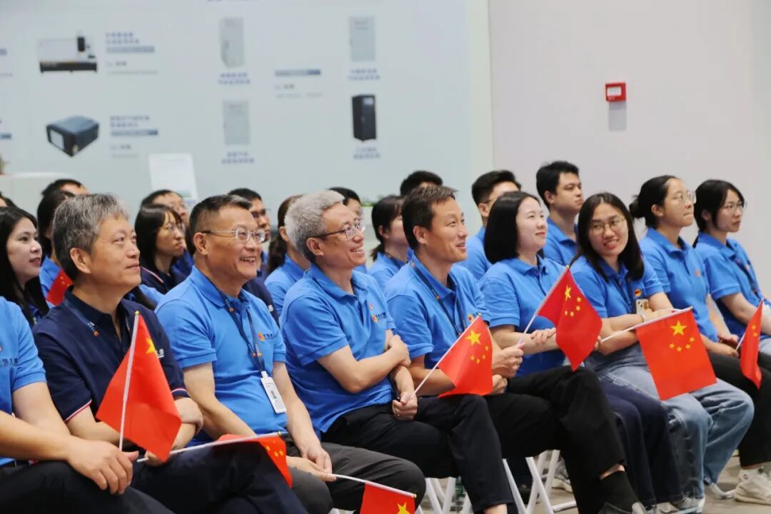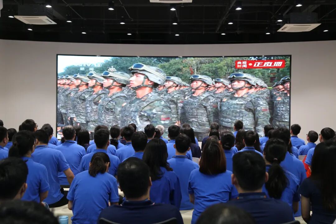 上午时分,展厅内早已坐满了满怀期待的禾信人。大屏幕前,大家自发整理衣襟、端正坐姿,眼神中满是对历史的敬畏与对祖国的热爱。随着纪念大会正式开始,当激昂的国歌响彻云霄,全体员工不约而同起身肃立,高唱国歌,嘹亮的歌声里,是禾信人与祖国同频共振的赤子之心。