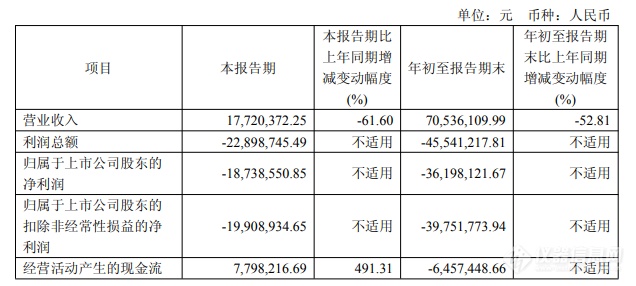其中2025年第三季度,公司单季度主营收入1772.04万元,同比下降61.6%;单季度归母净利润-1873.86万元,同比下降20339.17%;单季度扣非净利润-1990.89万元,同比下降134.98%。