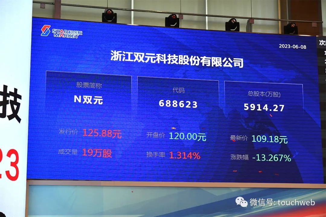浙江双元科技股份有限公司(简称:“双元科技”,股票代码为:“688623”)今日在科创板上市。