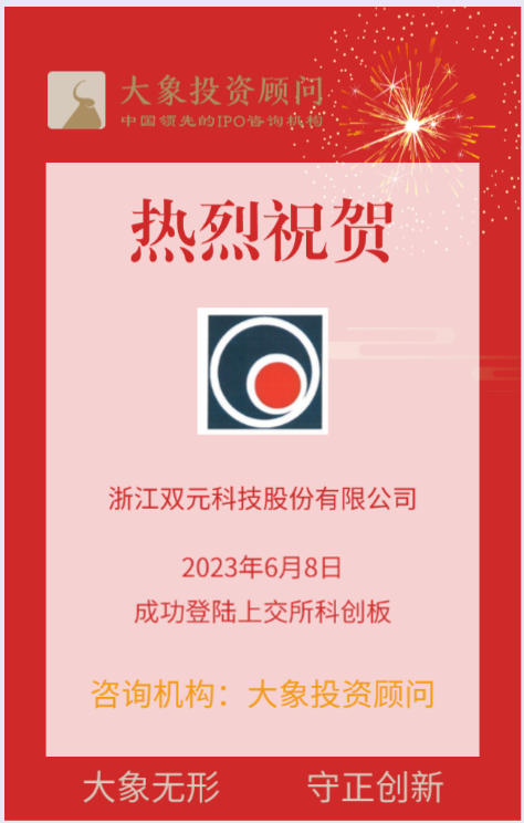 2023年6月8日,大象投顾客户——浙江双元科技股份有限公司成功登陆上交所科创板。