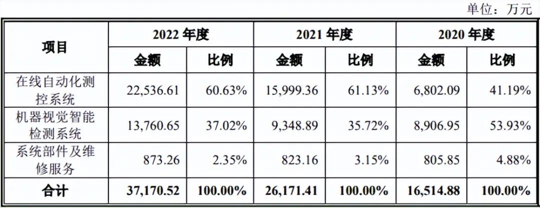 2022年度,双元科技的机器视觉智能检测系统收入为1.38亿元,占全年主营业务收入的37.02%。