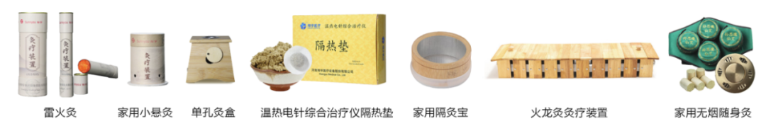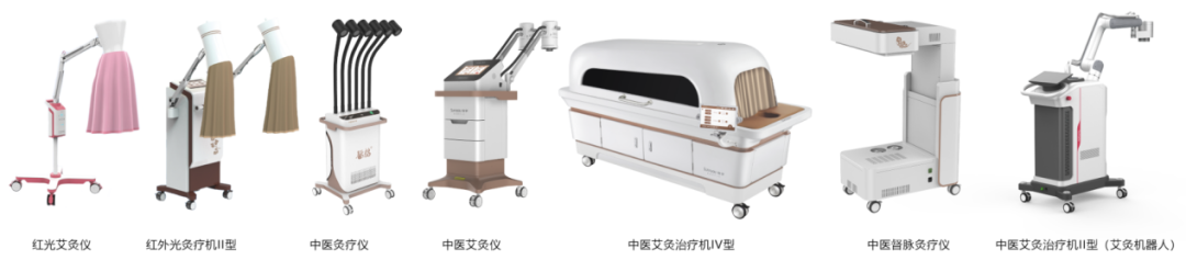 灸疗设备:红光艾灸仪、红外光灸疗机、中医灸疗仪、中医督脉灸疗仪、中医艾灸仪、智能艾灸机器人(产品覆盖非明火艾灸与明火艾灸、局部穴位艾灸与全身艾灸)。