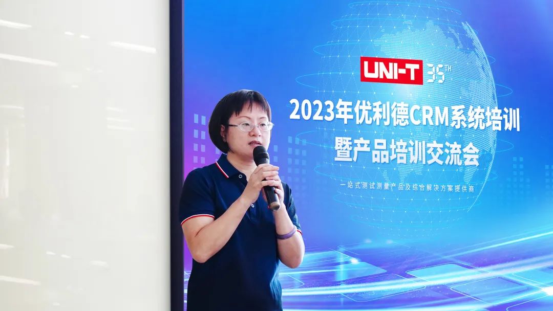 紧接着,优利德信息管理中心总监彭金兰女士上台为大家做此次CRM管理系统培训的内容介绍以及系统上线说明。彭总强调了CRM系统的重要性,通过目前在用的经销商平台与性能升级后的CRM系统功能差异对比,以及对CRM系统价值、数字化营销场景规划、以客户为中心的生命周期管理、CRM系统架构设计等几个方面进行全面阐述,让代理商们更清晰、深刻、全面地了解到CRM系统的作用与价值。最后,彭总还详细阐释CRM系统上线切换的事宜,让大家充分了解并准备好应对相应的变化。