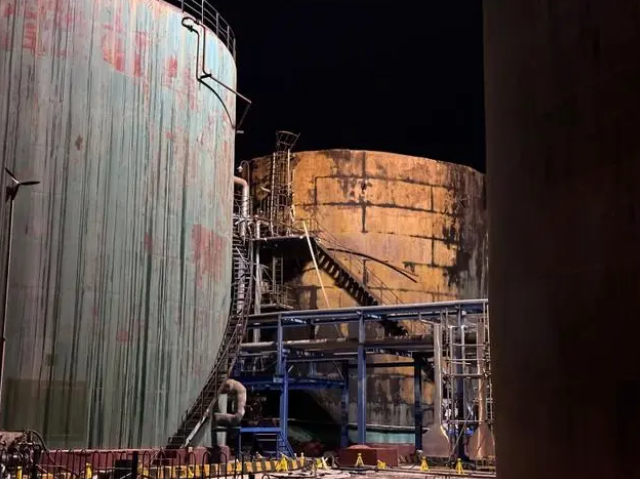 发生闪爆的酸性水罐上部有明显过火痕迹