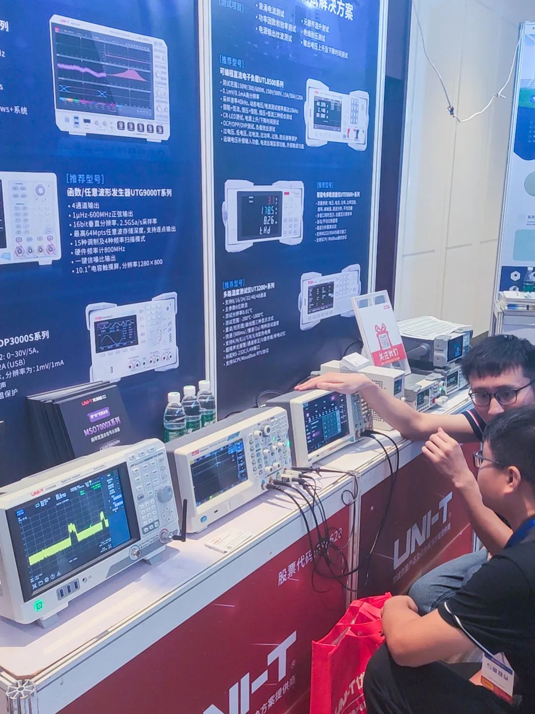 展会现场,优利德展示了MSO3504CS数字荧光示波器、UTS3036B频谱分析仪、UDP6730宽范围可编程开关直流电源、UTE9802+智能电参数测量仪、UTG9504T函数/任意波形发生器等产品,并详细介绍产品的核心优势和诸多细节,吸引了众多观众驻足,了解产品的应用情况,不少观众对优利德及其核心仪器都给予了高度认可和评价。
