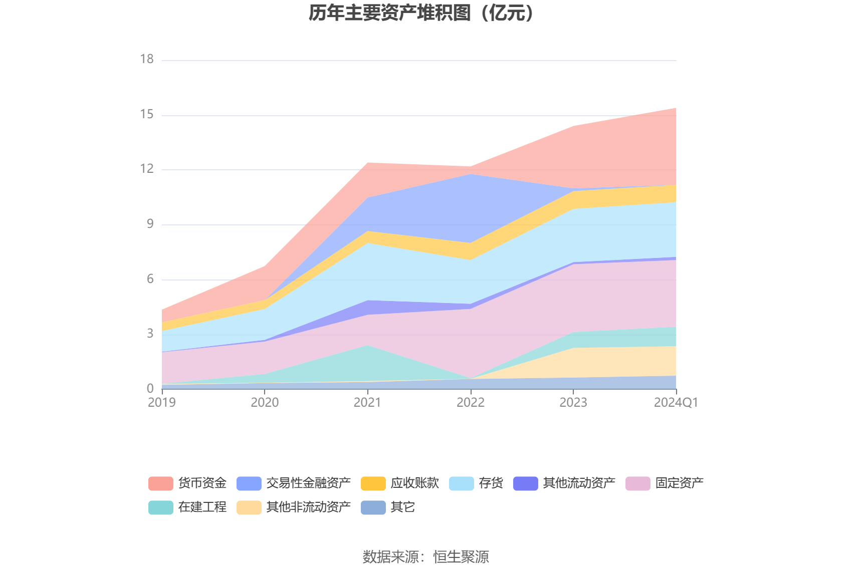 资产重大变化方面,截至2024年一季度末,公司货币资金较上年末增加23.47%,占公司总资产比重上升3.70个百分点;固定资产较上年末减少1.79%,占公司总资产比重下降2.07个百分点;交易性金融资产较上年末减少99.93%,占公司总资产比重下降1.05个百分点;在建工程较上年末增加22.73%,占公司总资产比重上升0.90个百分点。