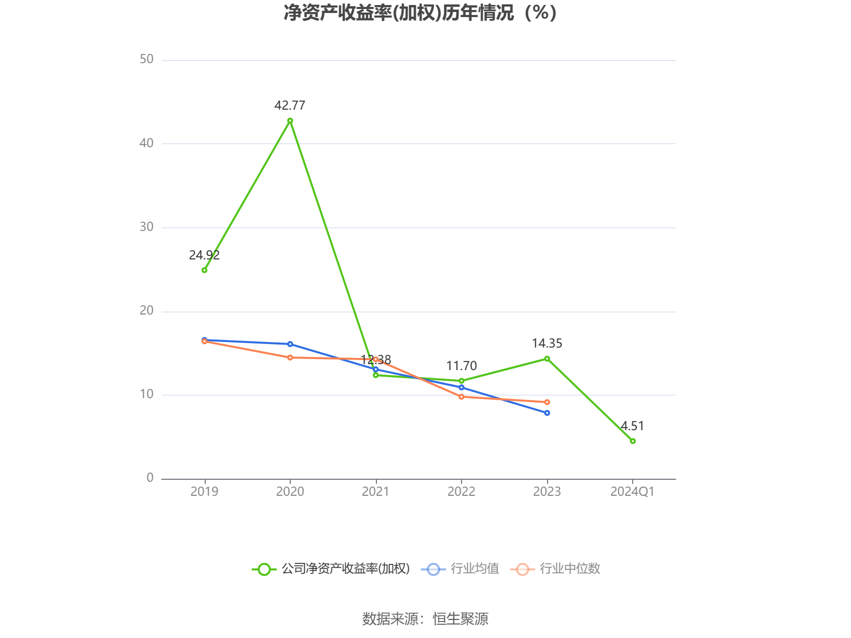 数据显示,2024年第一季度公司加权平均净资产收益率为4.51%,较上年同期增长0.74个百分点;公司2024年第一季度投入资本回报率为4.05%,较上年同期增长0.36个百分点。