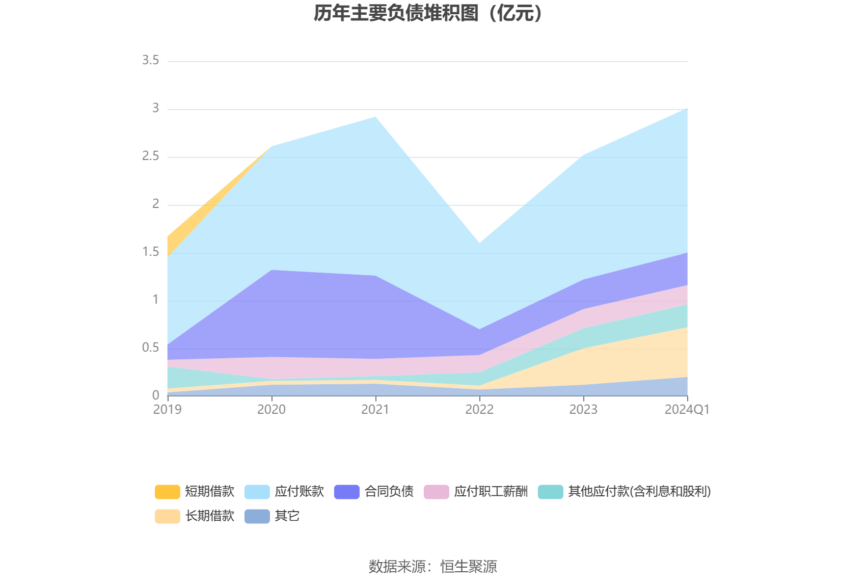 负债重大变化方面,截至2024年一季度末,公司应付账款较上年末增加15.75%,占公司总资产比重上升0.76个百分点;长期借款较上年末增加38.27%,占公司总资产比重上升0.77个百分点;应交税费较上年末增加215.40%,占公司总资产比重上升0.54个百分点;合同负债较上年末增加9.26%,占公司总资产比重上升0.05个百分点。