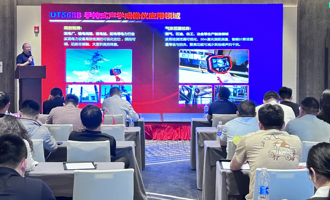 作为本次交流会的重头戏,重磅新品UT568B手持式声学成像仪可谓是备受期待。会议现场,优利德测试仪表市场部产品经理廖加廷先生对这款新品的技术特点、独特优势与应用场景进行了深入剖析。