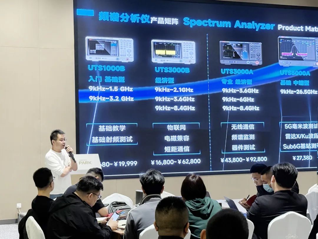 培训首日,优利德成都分公司总经理孙乔带领参与者深入了解了包括UTS7000A/UTS5000A/UTS3000A系列在内的信号分析仪,以及射频矢量信号发生器、射频模拟信号发生器和函数任意波形发生器的性能优势和行业应用前景。