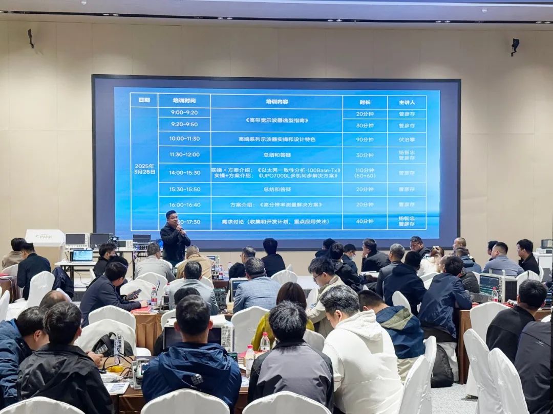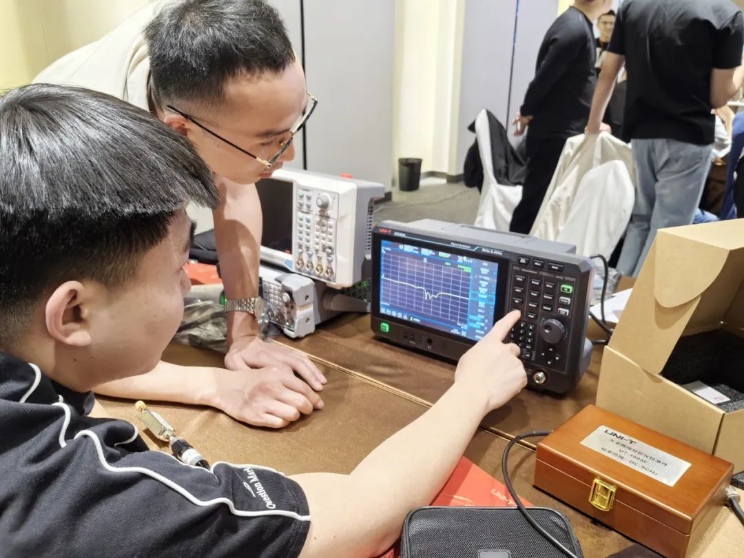 孙总以UTS3000A系列信号分析仪为代表介绍了信号分析仪的高级功能,带领全员进入“拆解模式”:从频谱分析到调制深度测试,从实时带宽扩展技巧到多域联调方案,参训者通过分组实操快速掌握设备的高阶功能,现场互动频频,技术讨论热度持续升温。