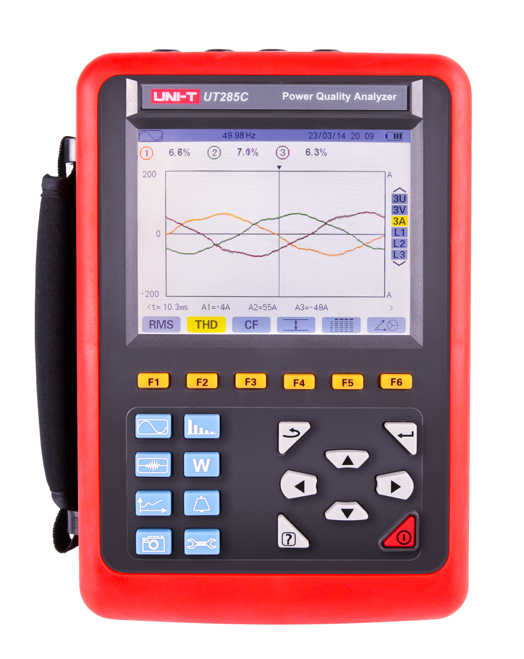 ·功能用途:可同时测量4路电流,4路电压、电流电压的峰值、一段时间内的最大最小值、三相不平衡度、短时电压闪变、变压器K因数、有功功率、无功功率、视在功率、功率因数、位移功率因数、有功电能、无功电能、视在电能、谐波比、总谐波失真度等。