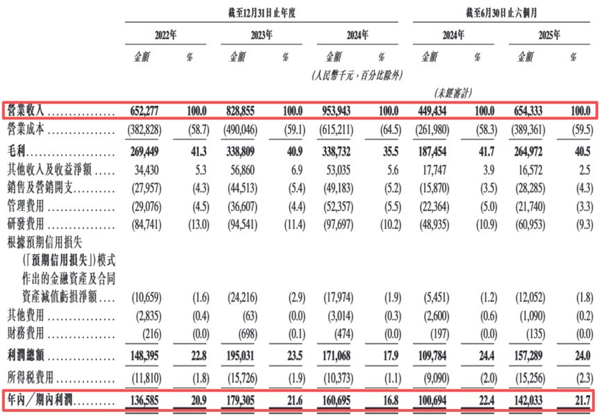 财务方面,报告期内,芯碁微装实现营收分别约为6.52亿元、8.29亿元、9.54亿元及6.54亿元,年内/期内利润分别为1.37亿元、1.79亿元、1.61亿元及1.42亿元。