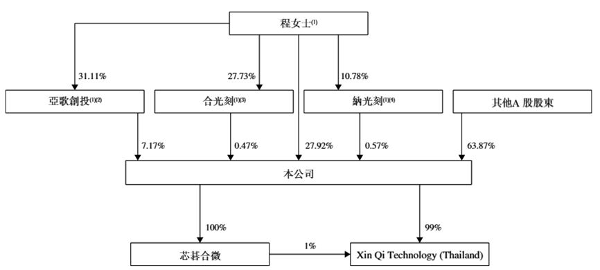 主要股东方面,芯碁微装董事长程卓及其控制的亚歌创投、合光刻及纳光刻合计控制公司股本总额约36.13%。