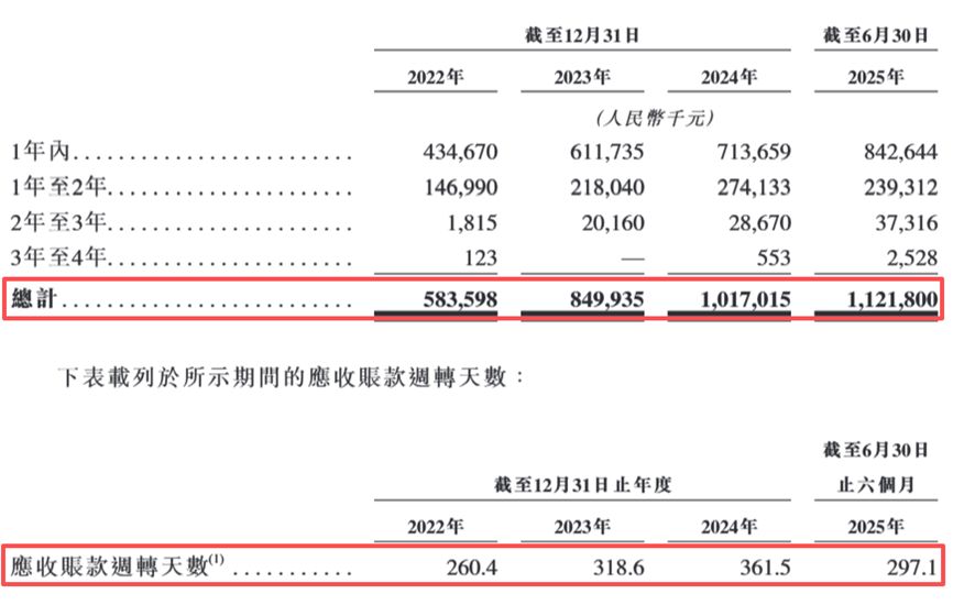 此外,芯碁微装还存在着应收账款和应收账款周转天数不断增长的问题。具体来看,公司的应收账款主要包括根据各业务线销售货品而应收客户的款项。芯碁微装一般提供6—12个月的信贷期,就若干主要客户可延长至最多24个月。
