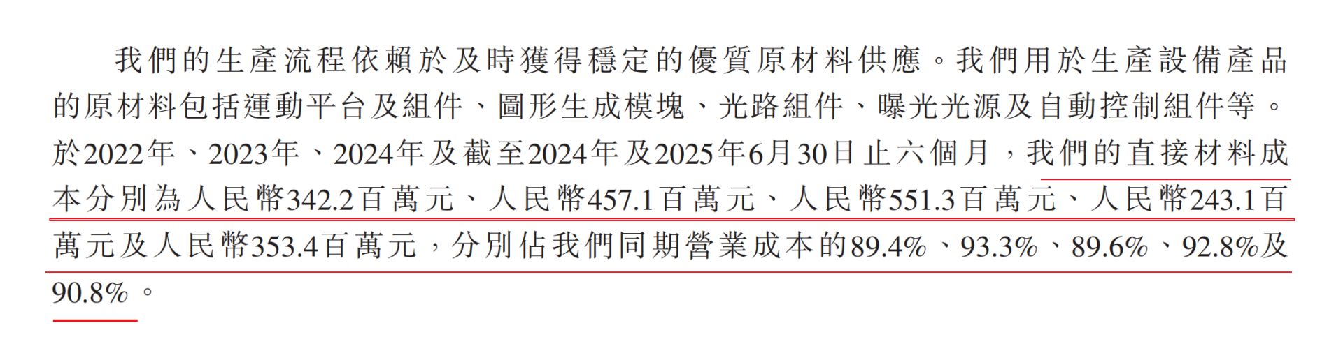 报告期内,芯碁微装的直接材料成本分别为3.42亿元、4.57亿元、5.51亿元及3.53亿元,分别占同期营业成本的89.4%、93.3%、89.6%、92.8%及90.8%。