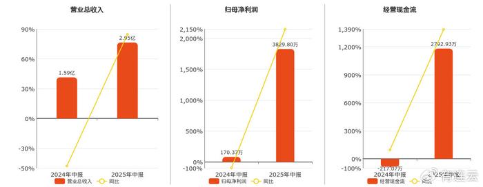 公司营业总收入为2.95亿元。归母净利润为3829.80万元。经营活动现金净流入为2792.93万元。