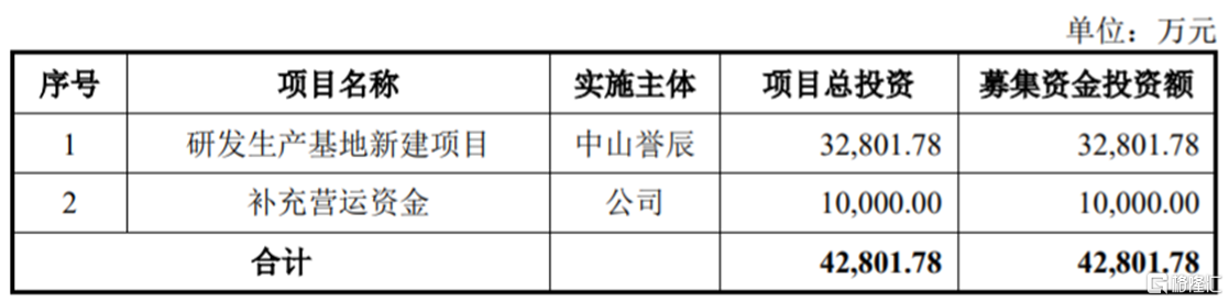 本次IPO所募集的资金主要用于研发生产基地新建项目、补充营运资金。