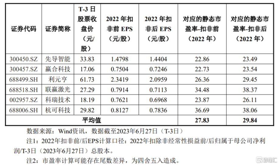 主营业务与发行人相近的可比上市公司市盈率水平,图片来源:发行公告