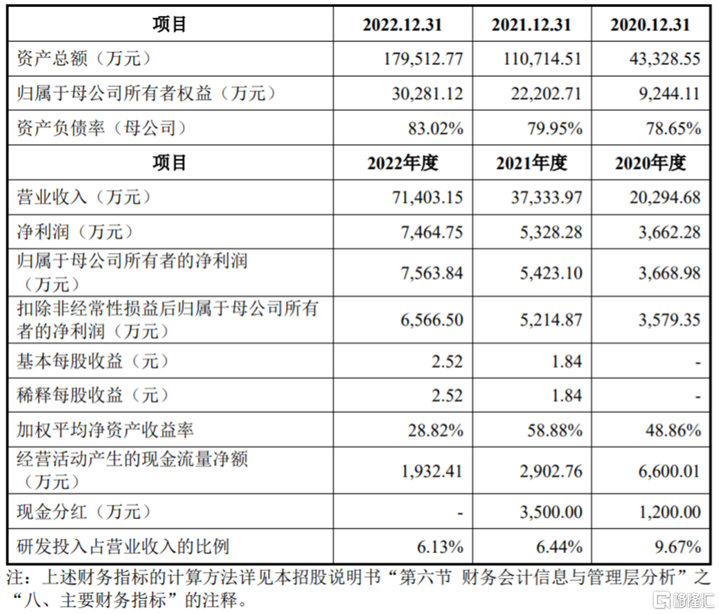 2020年至2022年,誉辰智能实现营收约2.03亿元、3.73亿元、7.14亿元,净利润分别为3662.28万元、5328.28万元、7464.75万元。