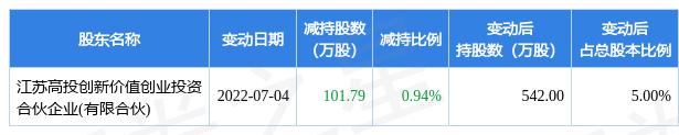 7 月 4 日华恒生物发布公告《688639:安徽华恒生物科技股份有限公司股东减持股份计划公告》,其股东江苏高投创新价值创业投资合伙企业(有限合伙)于 2022 年 6 月 11 日至 2022 年 7 月 4 日间合计减持 101.79 万股,占公司目前总股本的 0.939%,变动期间该股股价上涨 11.87%,截止 7 月 4 日收盘报 136.49 元。