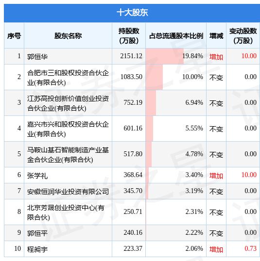 根据华恒生物 2022 年一季报公布的十大股东详情如下: