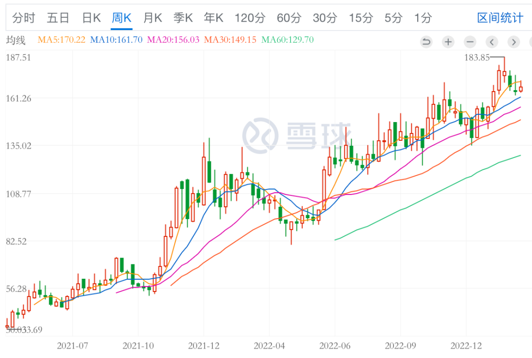 其中Q4单季度实现营收4.35亿元,同比增长30.59%,实现归母净利润1.02亿元,同比增长54.08%。对应EPS为2.95元,PE为56倍,优异的业绩支撑其股价从2021年4月登陆科创板的35元涨至167元(截至2月28日收盘),涨幅近477%。