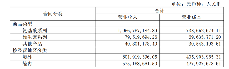 氨基酸系列产品一直是华恒生物营收的主要来源。目前,该公司氨基酸系列产品主要涵盖丙氨酸系列、L-缬氨酸、异亮氨酸、色氨酸、精氨酸等。数据显示,报告期内,氨基酸系列产品实现营业收入10.57亿元,在总营收中的占比约70.99%,营业成本约7.34亿元;维生素系列产品的营业收入为7951.97万元,营业成本为6963.58万元;其他产品录得营业收入4080.12万元。