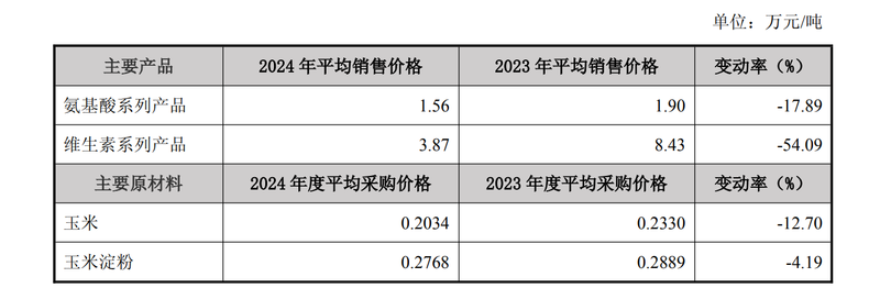 今年6月,华恒生物发布“关于2024年年度报告的信息披露监管问询函的回复公告”,详细说明了其主要产品价格变动的原因。数据显示,报告期内,该公司氨基酸系列产品平均销售价格为1.56万元/吨,同比下降17.89%;维生素系列产品的平均销售价格同比下降54.09%至3.87万元/吨。