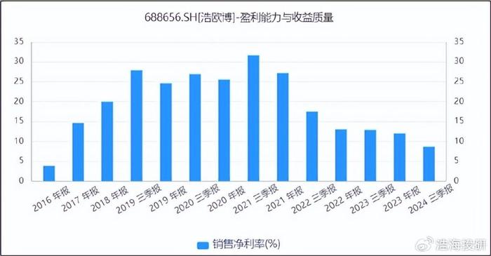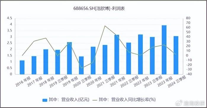 然而,自2021年上市以来,浩欧博的收入增速,有种“一年不如一年”的感觉。虽然,2023年,因疫情放开,需求集中释放,收入增速有所提高。但并不持续,2024年又被打回原形。