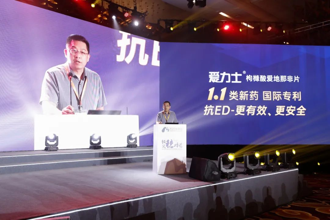 7月13日,活动现场悦康药业董事于鹏飞先生做了题为《找准切入点,掘金市场价值“洼地”》主论坛演讲。通过立足分析药品终端市场发展特点、趋势,深入延伸ED用药市场分析。进而展开爱地那非产品对零售药店的动销赋能做专业解读分享。他指出,作为中国第一个自主研发的PDE-5抑制剂,爱力士枸橼酸爱地那非片不仅是”十五“国家”863“计划科技部重大专项,同时也是”十二五“重大新药创制项目。爱地那非是经过权威医疗机构开展的多中心、随机、双盲、安慰剂平行对照临床试验验证了的,有效率高、勃起硬度优、安全性高、起效迅速、不受高脂饮食影响且吸收迅速,代谢无残存的优质产品。自从2022年1月上市以来,深受合作伙伴和众多患者的好评。