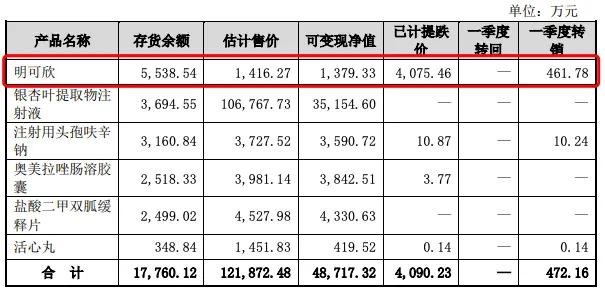 具体而言,明可欣产品跌价金额为4075.46万元,占库存商品整体跌价比例为86.31%,是公司存货跌价损失大幅增长的主要原因。