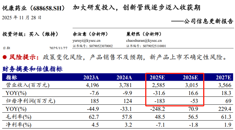 前两份研报发布于6月15日和8月30日,都是预计2025年净利润金额为5100万元;特别是第二份研报发布时,悦康药业刚公布了亏损上亿元的半年报,但这二位分析师还是坚持“看好公司创新布局带来的成长潜力,维持原盈利预测”。